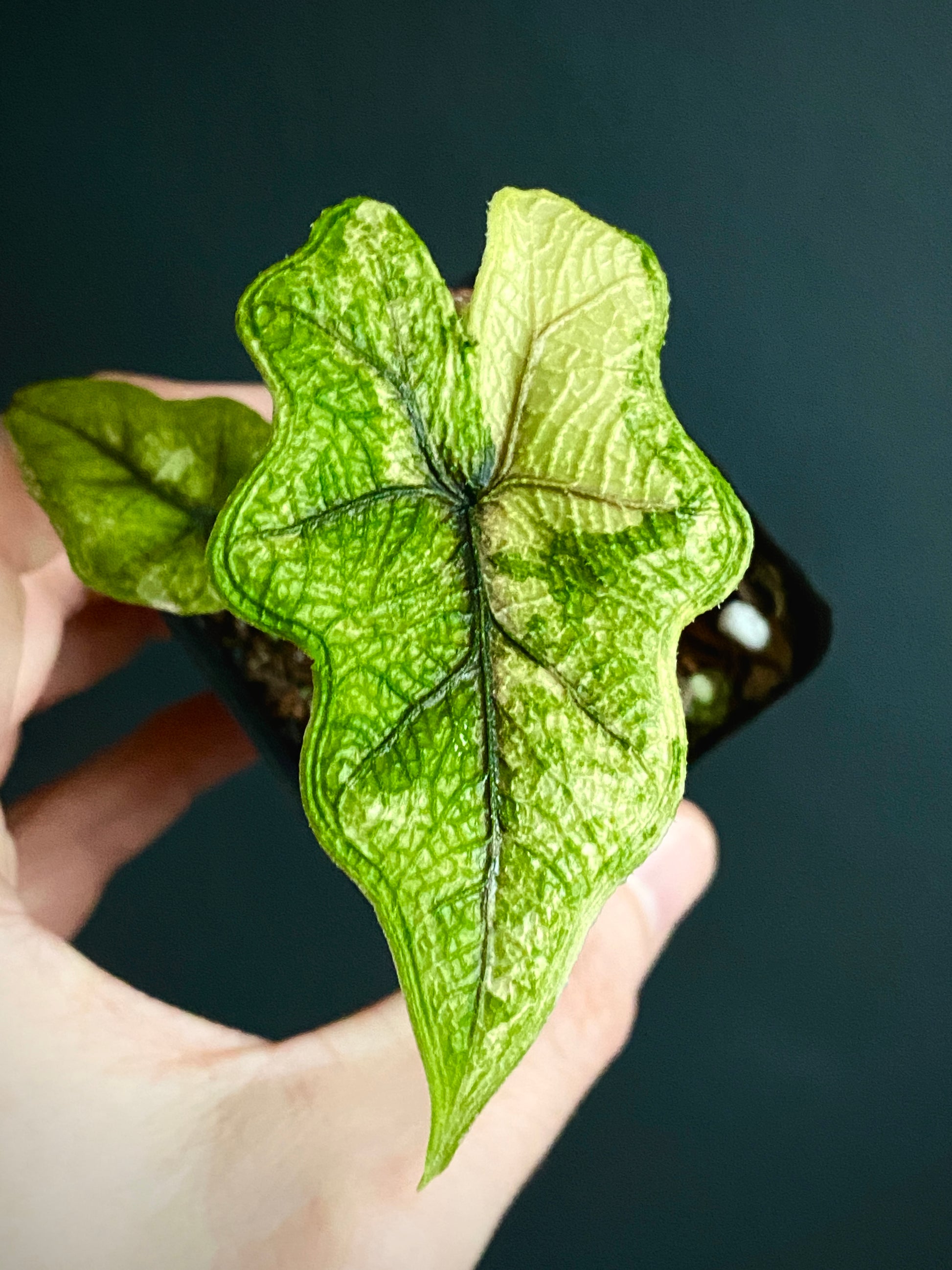 A beautiful baby variegated 'Jacklyn' showing segmental aurea variegation that burns in to a pale, almost albo colour.