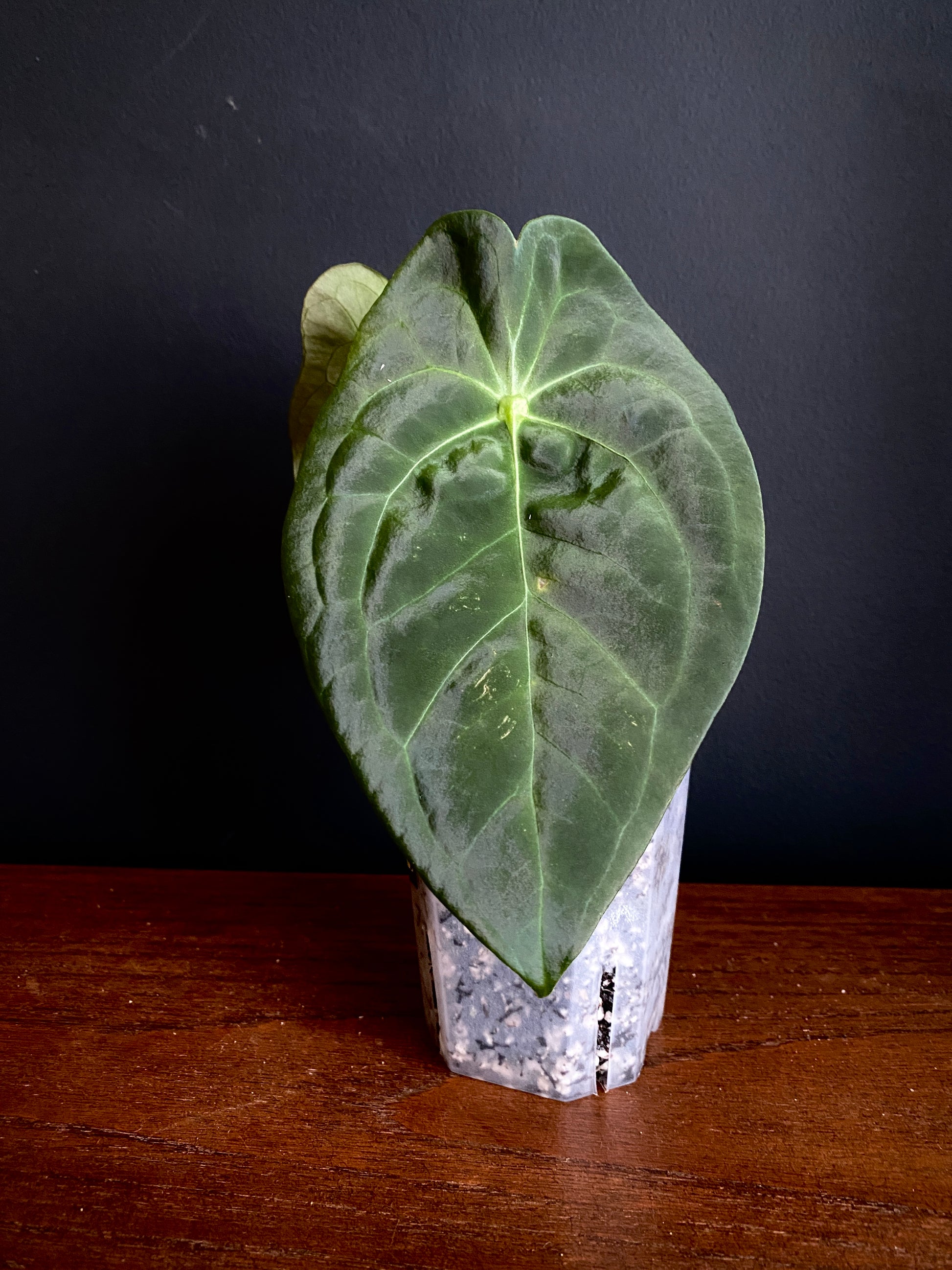 ☀️ Light: Bright, indirect light to maintain large, but dark leaves.