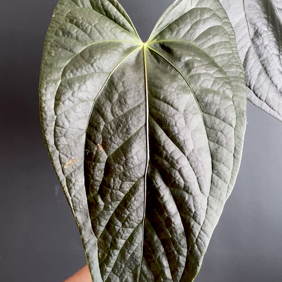 Anthurium Queen of Hearts is known for its super dark, almost black, glossy leaves.