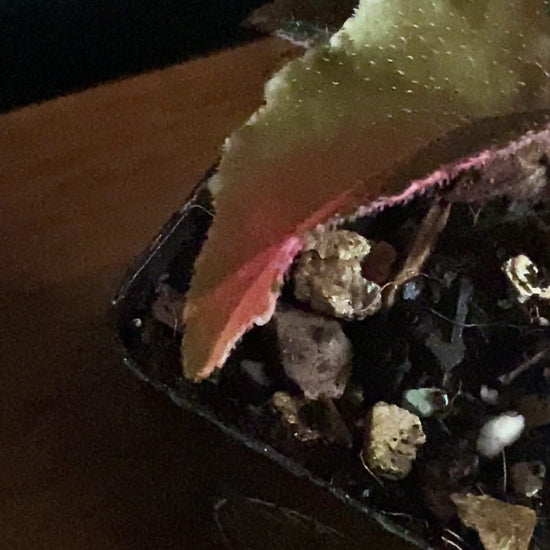 Begonia ‘Ginny Galaxy Pink’ is a striking and extremely rare variety known for its dark leaves dusted with bright pink speckles and splashes, giving it a “galaxy” effect. Compact and eye-catching, it makes a perfect statement piece for any rare plant collection.